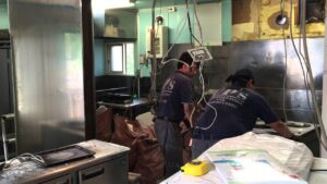 札幌市店舗工事 設備機器搬出工事作業風景です。居抜きですが不使用な設備機器は店舗機器設備業者に買い取っていただきます。 source
