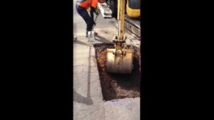 札幌市中央区 舗装工事 縁石切り下げ掘削作業風景